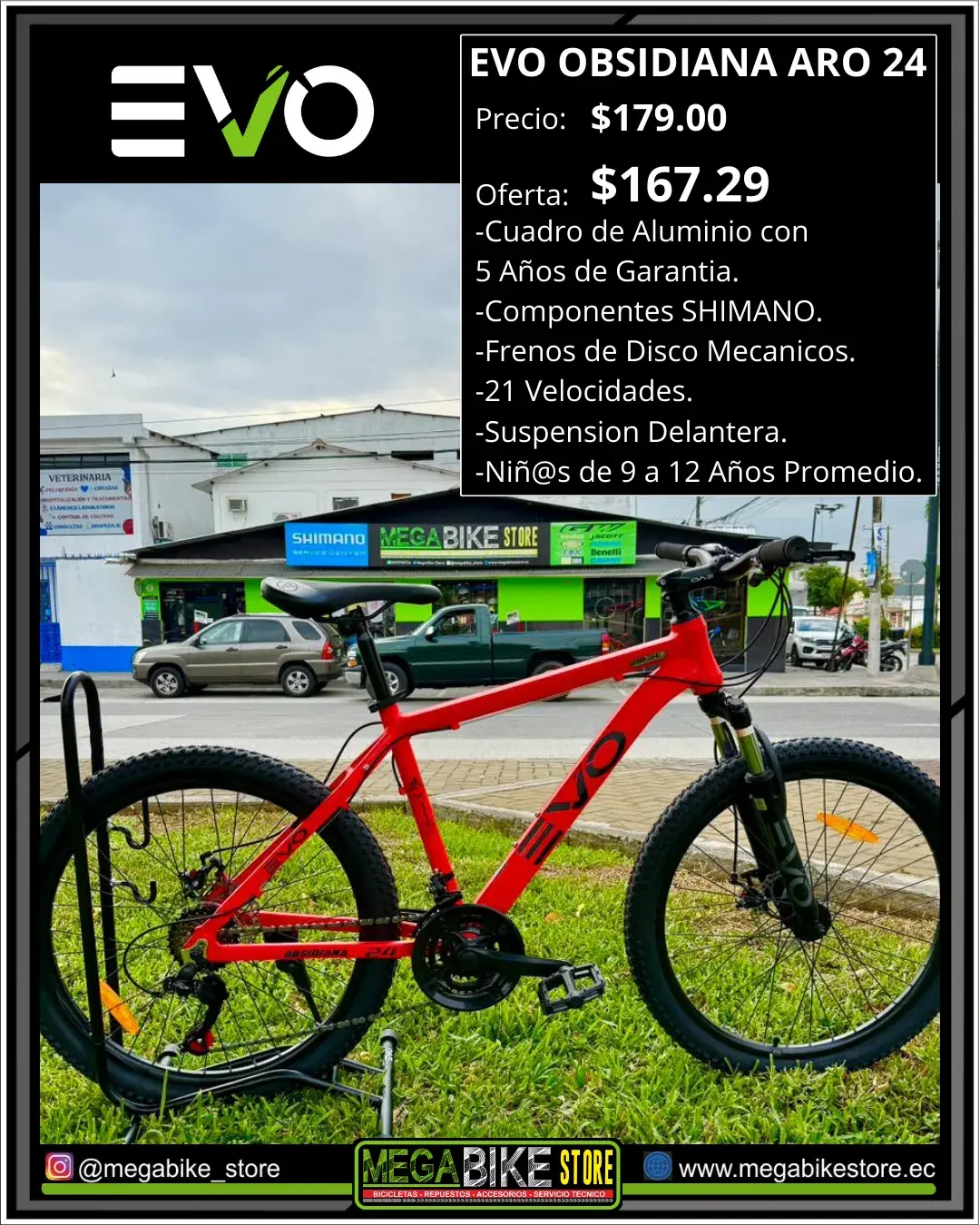La Bicicleta EVO OBSIDIANA Aro 24 es una bicicleta diseñada para acompañar a los más jóvenes en sus primeras aventuras con una bici más completa, segura y de alto rendimiento. Su cuadro de aluminio EVO con 5 años de garantía ofrece resistencia, ligereza y una conducción más cómoda para recorridos largos o caminos irregulares.