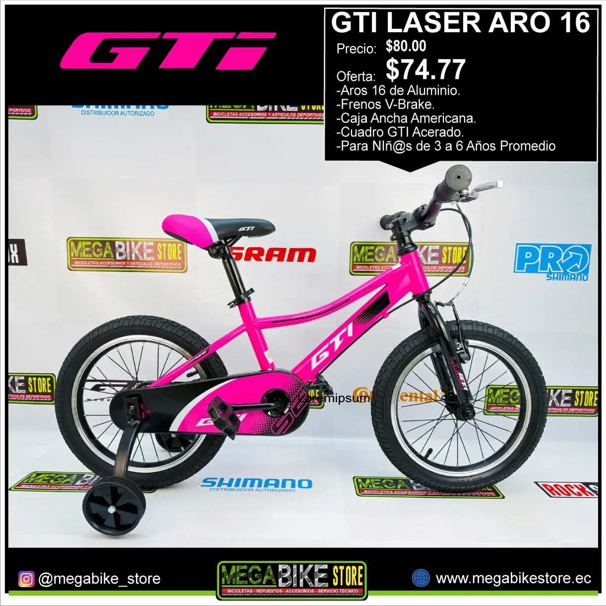 SKU: JV08807-P Categoría: Bicicletas Aro 16 Etiquetas: ARO 20 PARA NIÑAS, aro 29, aro26, BICICLETA, bicicleta montañera, bicicleta para ejercicio, Bicicletas Guayaquil, bike, carbono, giant ecuador, Gw, marca sunrace, maxxis, mega bike store, mtb, niñas, shimano, SRAM, sunrace, talla bicicleta, Tienda de bicicletas, venta bicicletas